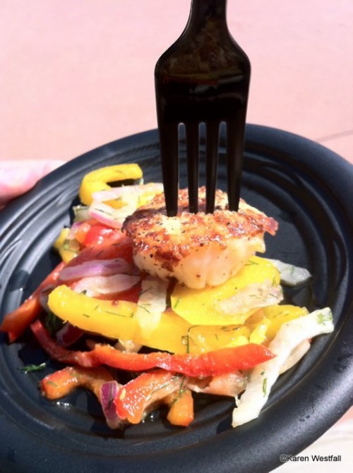 There are two reasons why the line at the New Zealand booth might be long this year: 1. It’s right at the entrance to the World Showcase, so it’s the first booth a lot of hungry folks will hit; and 2. The lamb slider and the scallop dishes are getting top marks from a lot of hungry folks. 😉 Check out more photos, the full menu, and pricing on our New Zealand Booth Page.