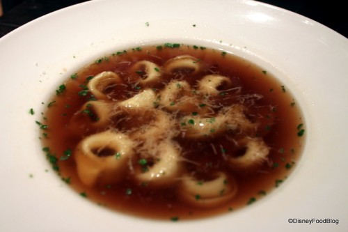 Next came the soup — a deep, rich chicken broth with delicious meat tortellini. Again, another amazing, yet very simple, dish that knocked it out of the park. I can’t personally rave about the salad (it was my husband’s), he did enjoy it!