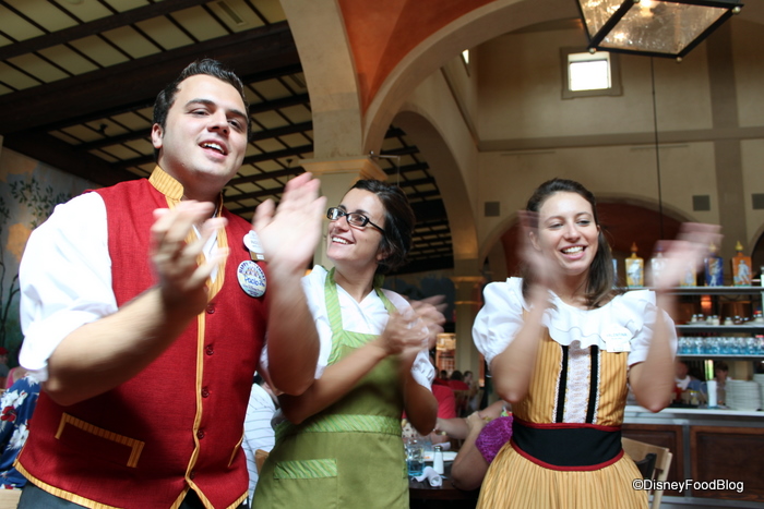 We had reservations for Via Napoli with the idea that we’d try the pizza. We were seated on the covered veranda just off the piazza. Our server was a delightful and attentive young lady named Guilia, in fact she’s in the birthday photo in your post. She was from Mantova Italy. After reading the menu we decided to forego the pizza for the veal and chicken parmigiano and a bottle of wine. The food, the wine and the service could not have been better. The addition of an impromptu operatic serenade by a guest on the piazza made for a most memorable experience. BTW a few days later we were able to walk up and get a table for lunch and the pizza was awesome. Plans are now in the works for 2011 and Via Napoli will be the first reservation we make followed by the new Le Cellier signature dining experience.