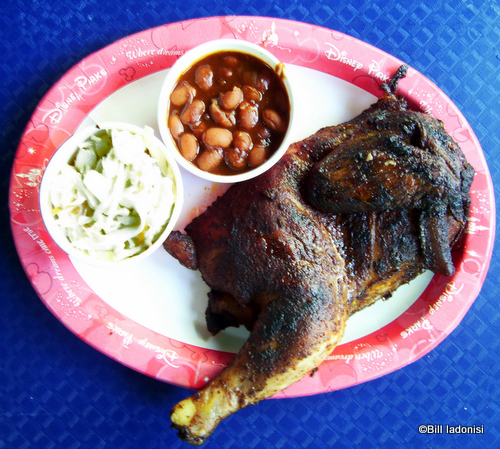 Hello again Disney Food lovers! As promised, here is the second in the continuing reviews of Disney’s amazing quick-service restaurants. From our last review of the Columbia Harbor House, we trek over to Disney’s Animal Kingdom to talk about a personal favorite of mine, the Flame Tree Barbecue restaurant. Located in Discovery Island on the path to Dinoland U.S.A, you will find nothing but hearty, stick-to-your-ribs fare offered here. If you like the taste of good old American Barbecued Ribs and Chicken, look no further.