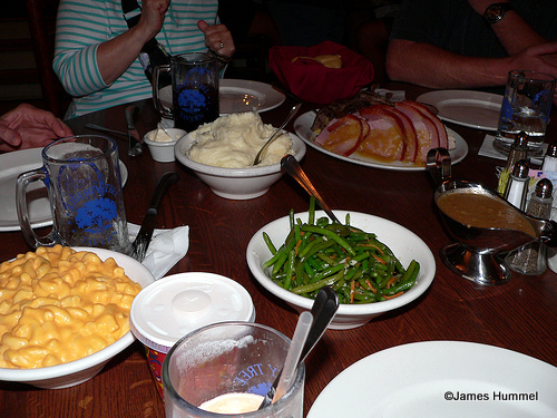 The menu is a set menu for dinner, served family style, all-you-care-to-eat. We were brought out sweet rolls with whipped honey butter to start. I found the rolls to be a little stale, but my son found the whipped butter interesting and wanted to eat it right out of the bowl.