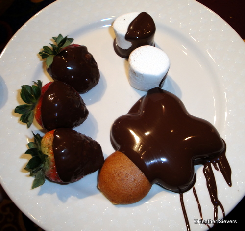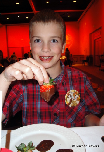You ready for dessert? I think our dessert course was approximately an hour long. Something very nice about the meal was that no one was trying to rush us along. The cast members were very attentive, keeping our drinks topped off, offering coffee and clearing away the dirties. Our table was centrally located to each buffet, but it was directly next to the dessert table. This was so much fun for our boys. They’d head over, grab something to try, come back, taste test. If they liked it, they’d finish it off; if not, they’d go back for something different. Heavenly.
