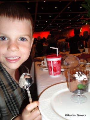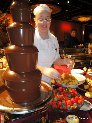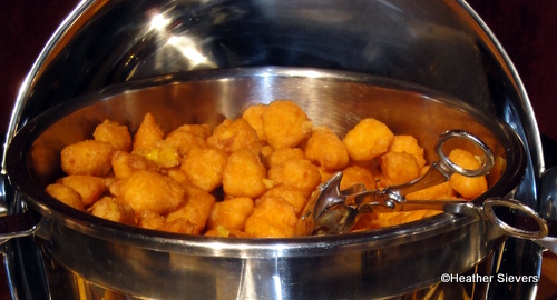 There was also a mini salad bar, Mandarin orange chicken, and macaroni with meat sauce. The Children’s Buffet even had its own dessert table. The dirt n’ worms were a huge hit with my boys. The most delicious item at the Children’s Buffet? Sweet corn nuggets. Seriously heavenly. Little fried balls with sweet creamed corn inside. Fabulous.