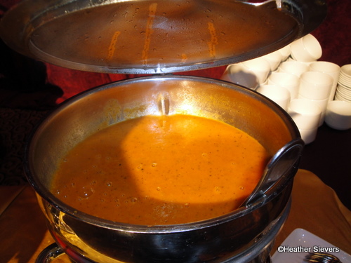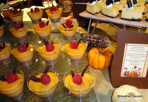 The Bread and Soup Buffet was our next stop. There were many different types of rolls along with freshly made banana muffins and pumpkin muffins. As for the soups, I love, love, love soup. So when I saw the butternut squash soup, I got pretty excited. It was amazing. Great flavor, creamy and just the right amount of spice to make it “Thanksgiving-ish.” There was also a very tasty grilled Fall vegetable bisque.