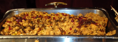 My boys and husband had the prime rib, and they ate every bite. There was also sweet potato casserole (yummy but not as sweet as I usually like mine) with toasted marshmallows, smashed potatoes, seasonal vegetables, baked Alaskan salmon, savory herb and sun dried berry stuffing (amazingly flavorful, especially when drenched in gravy), and roasted pork loin with cinnamon apple rum compote. The pork was the only dish that wasn’t a hit at our table — too much cinnamon.