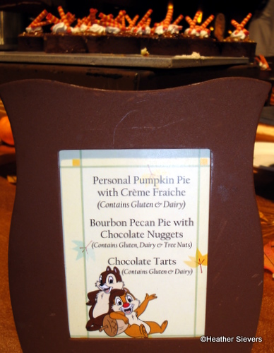 Eyes wide open, we made it to our table and decided to hit the Children’s Buffet first. We immediately noticed that each item was labeled with a sign naming the food and then indicating whether it contained dairy or was gluten free, vegetarian, etc. Although food allergies do not affect my family, how great of Disney to consider this and make it easy for families with special dietary needs?