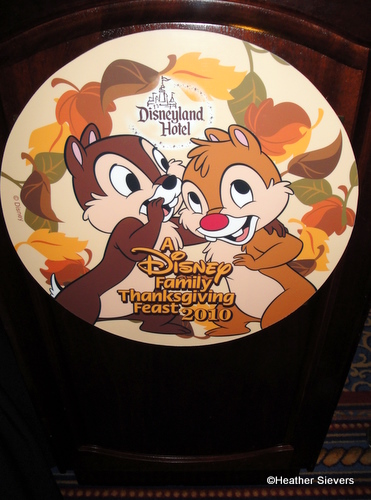 After we paid, we went into the “lounge” where there was coffee, tea, lemonade and a movie for the kids to watch until our name was called. Our reservation was for 1:15 and our name was called right around that time. Want to know something awesome? There was a guy there in a tuxedo whose sole job was to call the family names, it was hilarious. So, when we were called, we headed over to the man in the tux, were handed our commemorative “Chip and Dale” event buttons, and were led to our table.