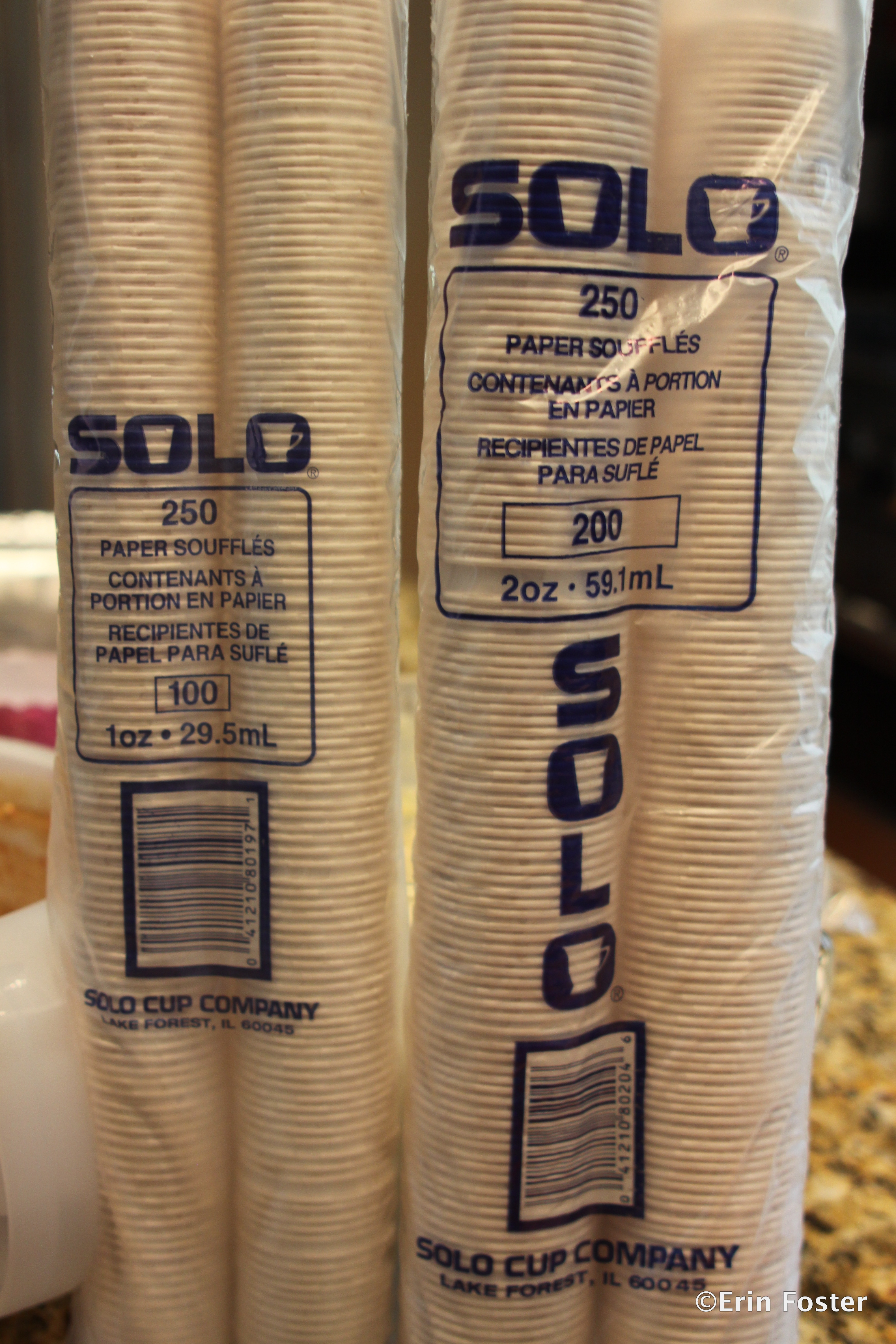 After a consultation with my father, a research and development scientist in the paper and food packaging industry, I felt confident that I wouldn’t burn the house down by putting paper in the oven and decided to focus on what, to the untrained eye, seemed to be those little paper cups that you pump ketchup into at fast food restaurants. (For those of you in the know, these are the cups they use at the toppings bars at Cosmic Ray’s, Casey’s, and other WDW counter service venues.)