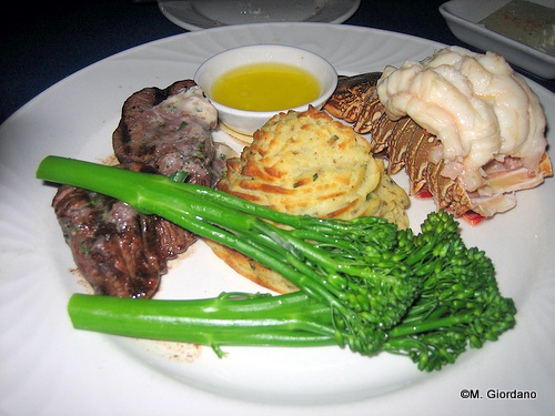 The filet medallions were outstanding. They were cooked perfectly with just the right tenderness and a savory seasoning. I was a bit disappointed in the lobster tail. The meat seemed overcooked and somewhat chewy. I also doubted that it was as fresh as their whole Maine lobsters which are flown in daily. The potatoes and broccoli were very flavorful sides that complimented the main dish.