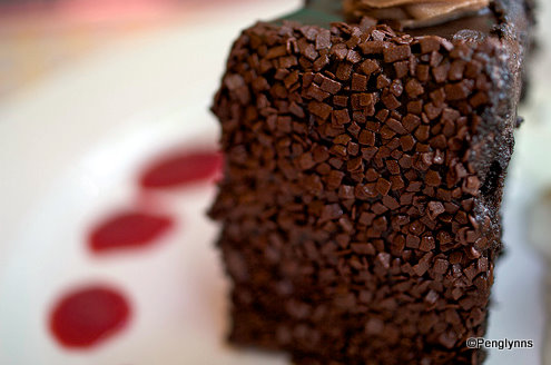 A stunning, and unique, view of chocolate cake at Les Chefs de France in Epcot! Photographer: Penglynns
