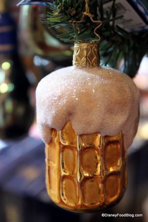 So, I was wandering around Epcot’s Germany during our October vacation and found myself in the Christmas store there. “Wow,” I thought, “there’s so much great Christmas stuff here that I’d love to write about, but none of it is food-related, so… .” But then, there it was! Glimmering in the late-afternoon sunlight — Beer! Cookies! Christmas! I knew then and there that I wanted to write about this perky little tree, and I figured I’d save it for today!