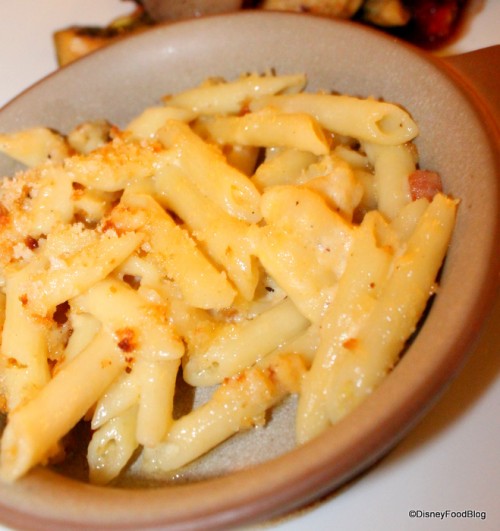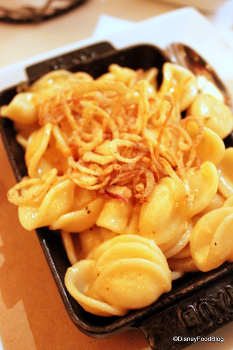 First, we gotta take a gander at good old macaroni and cheese. When I asked Disney World’s Sanaa Chef Bob Getchell about the gourmet mac and cheese trend that seems to be taking over Disney restaurants, he mentioned that chefs like to make food they themselves love; many have fond memories of mac and cheese while they were growing up, and they want to create new and improved contemporary recipes for the dish. Here are a few of our favorite versions on and around Disney property: