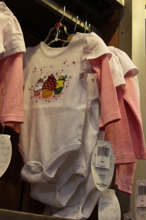 The next day, while shopping at Mouse Gear in Epcot, I noticed what seemed to be the same cupcake, but depicted as an illustration on a wide range of children’s clothing.