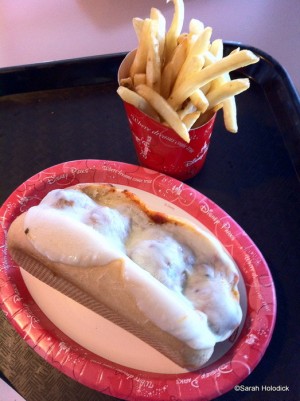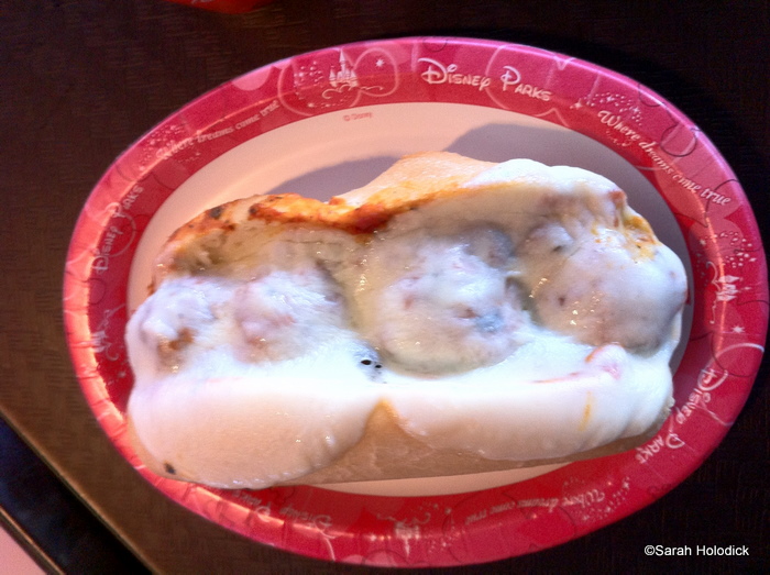 I have to say- Disney does a decent meatball sub— I ordered one over the summer at Pinnochio’s Village Haus and it was very filling (and didn’t leave me with that greasy “eeehhhh” feeling that Disney pizzas do…lol). I didn’t mind the fries- and I’m sure they’d substitute something else if you asked.