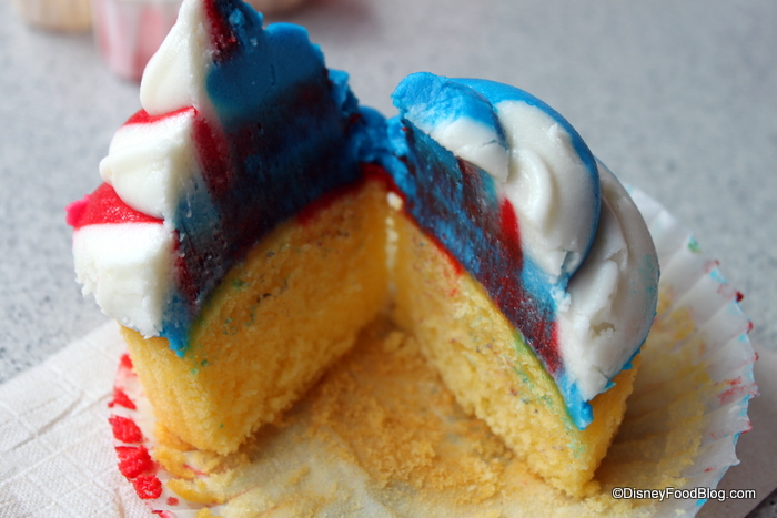 OK — you guys remember when I wondered “aloud” about the “Pink, Blue, and White cupcakes” in Disney Parks, right? I see them all the time — everywhere — but I’ve never tried them. Why? Because they look like they’re made out of plastic and can’t possibly taste good. But I promised I’d try them, so here’s the review…