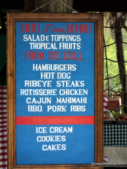 So, since I only had an hour or so to spend on Castaway Cay (the cruise was less than 48 hours, and I had some serious eating to do!), it was soon time to pack up and take a look at the lunch that was just being served over at the Serenity Bay BBQ.