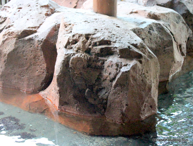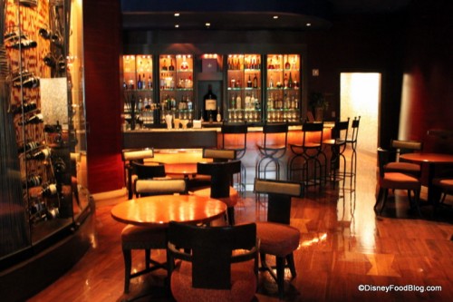 Seating here can be at tables or booths. Our favorite place to sit is at a table by the window during daylight hours (see if you can find the hidden Mickey outside!), and over by the “sunset” in the back at night. We try to avoid the “half-booth, half-chair” seating arrangement, as those types of tables always make us feel as though we’re too close to our neighbors to really enjoy a private meal.