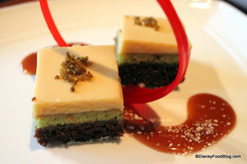 Something that I do notice, however, is that when a favorite dish is removed from the menu, the replacement includes the same flavors. For example, the pistachio creme brulee was axed, but a South African Spice Cake with pistachio frangipane, amarula-white chocolate mousse, and caramel was added in its place. (Nothing to write home about as far as taste is concerned… at least for us.)