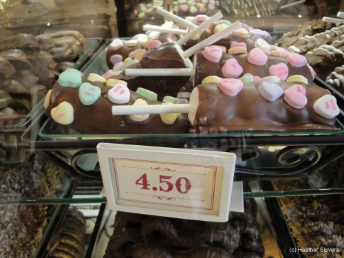 We’re back with more Dining in Disneyland fun! It’s February and Disneyland is ready — a variety of fun Valentine’s Day treats can be found throughout the Anaheim Resort. We found these tasty treats at both the Candy Palace on Main Street and at Marceline’s in Downtown Disney.