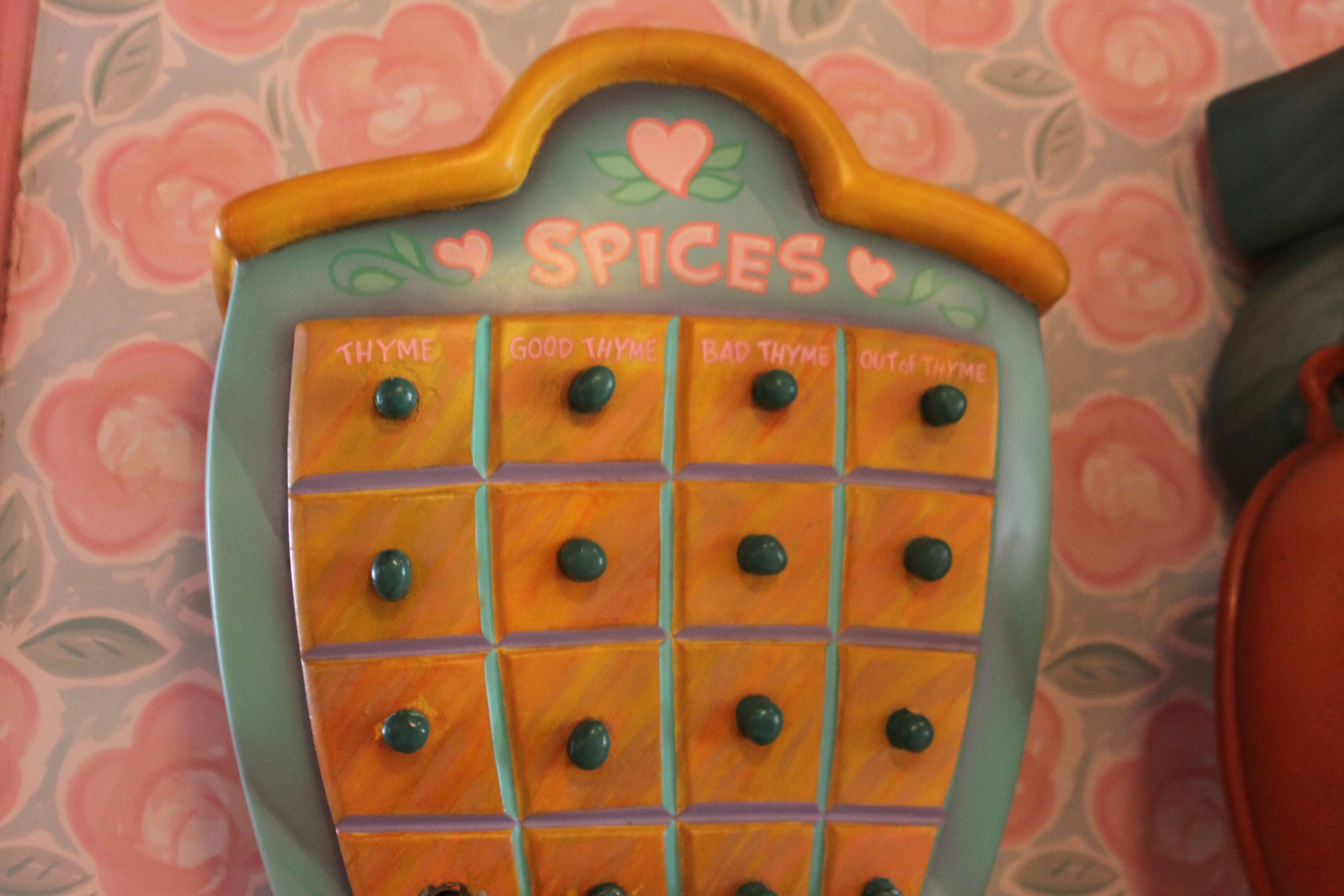 She’s got quite the spice rack! I wonder what you use “Outa Thyme” for!