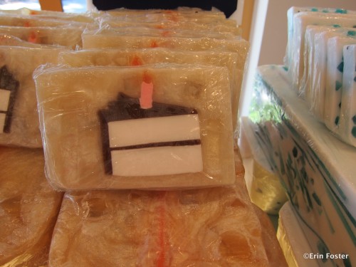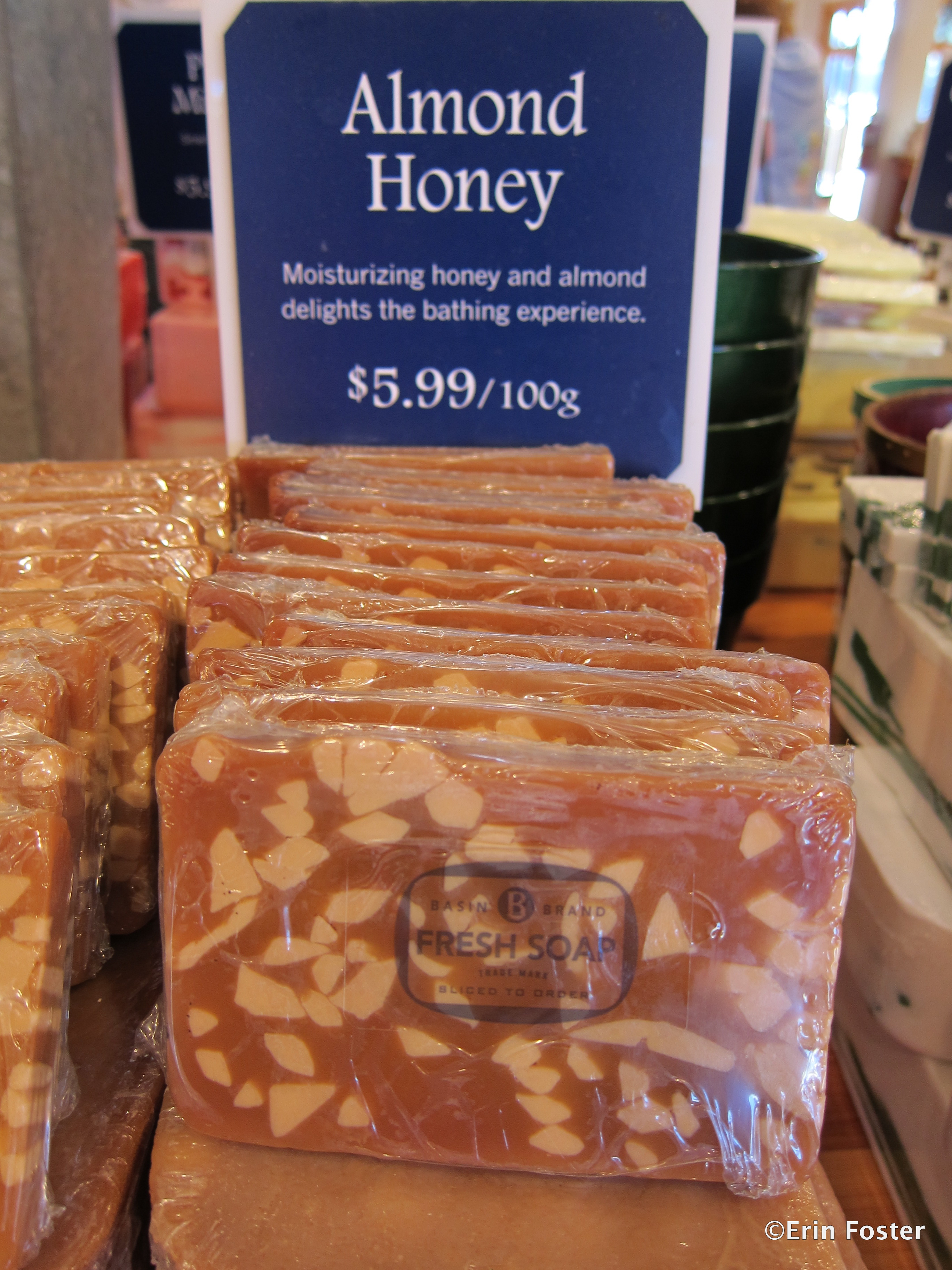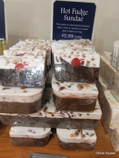 We stop there, or at the sister Basin store at Downtown Disney, every trip to stock up on birthday cake soap. It smells as sweet as cake, but with none of those pesky calories. Over the years, we’ve purchased several dozen slivers of “cake” to use ourselves or to add as a special something to friends’ birthday packages. Isn’t it pretty?: