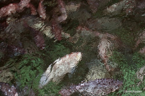 The interactive element of the aquaculture area involves feeding the animals. Guests, including children, are given a handful of nutrition-filled pellets. The first time we took the tour, the pellets were for feeding the alligators. Even though they are little alligators, housed behind a nice glass wall, I found myself to be more than a little jumpy around them. On more recent tours, guests have been instructed to feed their pellets to the fish. This is somewhat like feeding fish in a tank at home, only much, much bigger.
