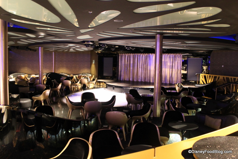 Evolution is the only club where you’ll find dancing, but there’s plenty of space on the illuminated dance floor! Once in a while you’ll even see some Disney Dream entertainment cast members tearing it up on the tiles. The stage is also used for other shows and acts on longer cruises.