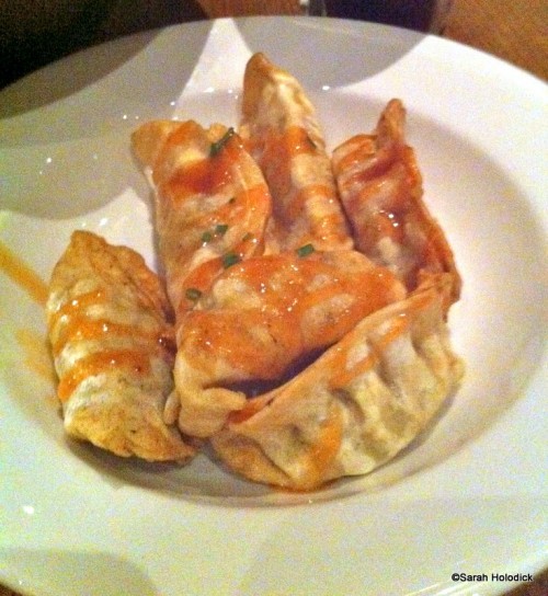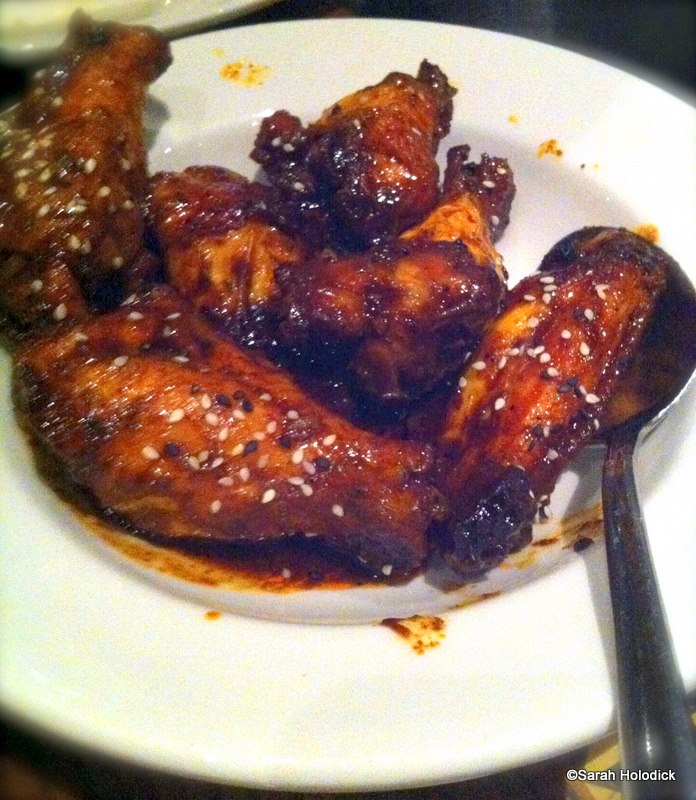 Our next course arrived and consisted of Pork and Vegetable Dumplings and Honey Ginger Chicken Wings. The wings are the same ones they serve at Tambu Lounge, however those arrive with a mustard sauce drizzled over the top. We enjoyed the dumplings and they weren’t greasy, although I think they were a little heavy on the ginger.