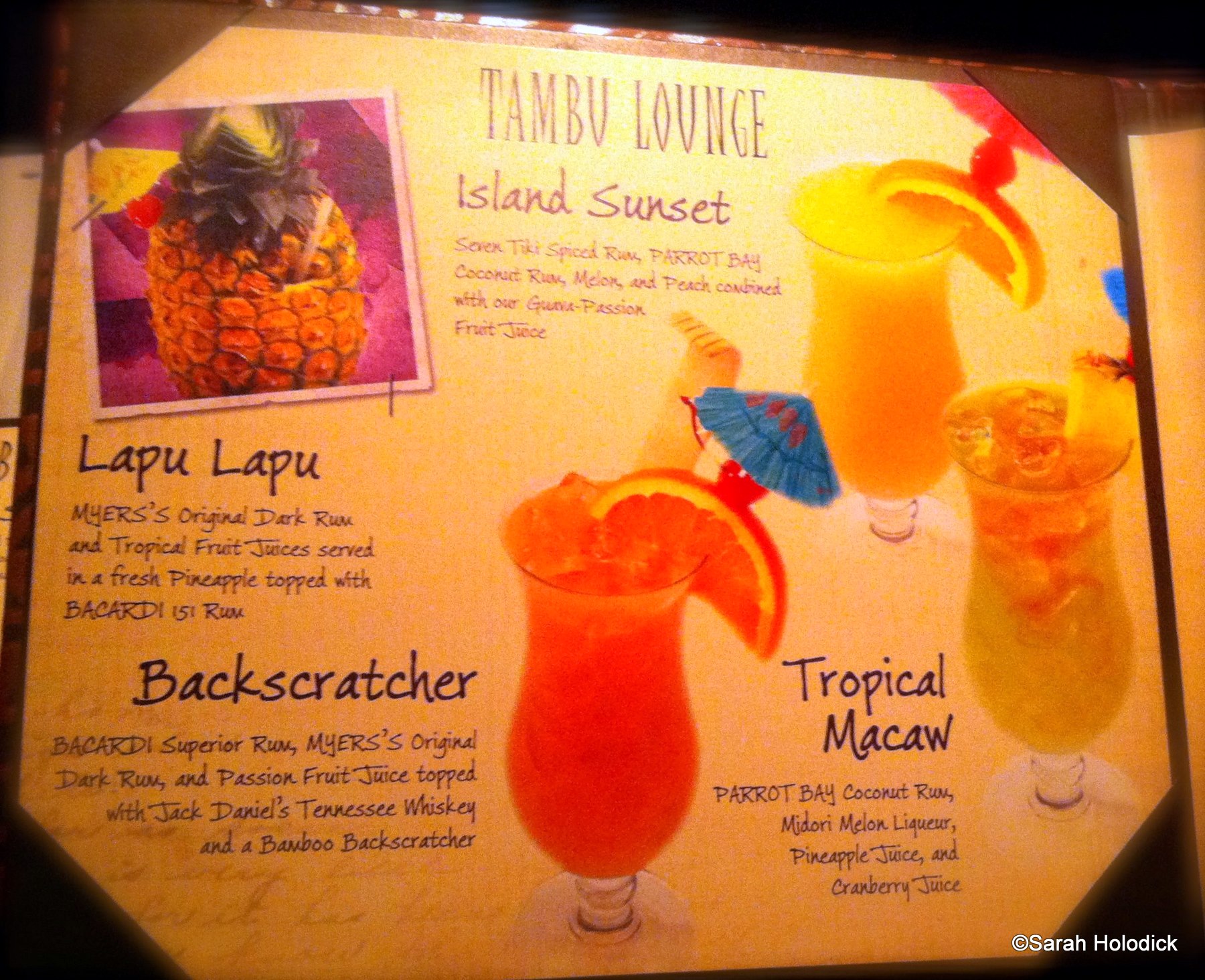 The Tambu Lounge is and has always been a great place to stop, take a break from the parks on a hot day and just chill. We haven’t been there in a couple of years, but there is a waitress working at the lounge who has been at WDW from the very beginning. If you see a sort of exotic looking lady who looks polynesian ask her about it. She has some great memories.