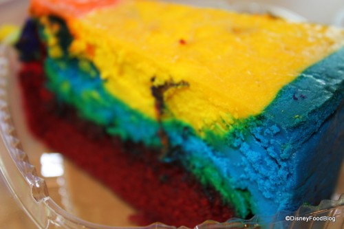 One of the reasons we stayed at Pop Century in May ’09 was to try the Tie Dye Cheesecake. Three generations of us fell in love with it. Of course, our kids loved that the fun colors made their tongues turn silly colors. TechyDad and I have tackled making it at home. We have written about it a few times as we did multiple trials. We have found that we actually like to use Strawberry cake base at home over the Red Velvet. For some reason the red velvet at Disney is not as harsh as the ones we tried. Lots of our friends who have never tried the Pop cheesecake have made them for parties and especially for holidays with color schemes.