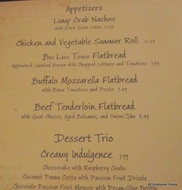 Whenever a visiting-“Bay Lake Tower”-staying friend invites me to this lounge I accept without question. Favorite item on the menu is the Chocolate Martini (available in most lounges property-wide) and the Dogfish Head 30 Minute IPA