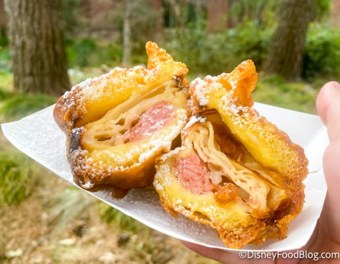 The sandwich is made of turkey, ham and Swiss cheese in a battered egg bread, lightly fried to a golden brown. This is one of the most iconic Disneyland meals and it’s a must-try!