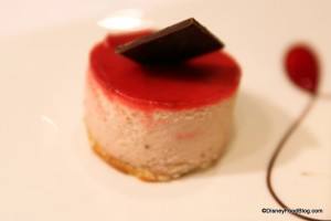 This strawberry cheesecake is served in the Enchanted Garden aboard the Disney Dream. The Enchanted Garden is one of the three restaurants that cruisers can enjoy in their rotational dining. Start planning your meal by checking out the menu.
