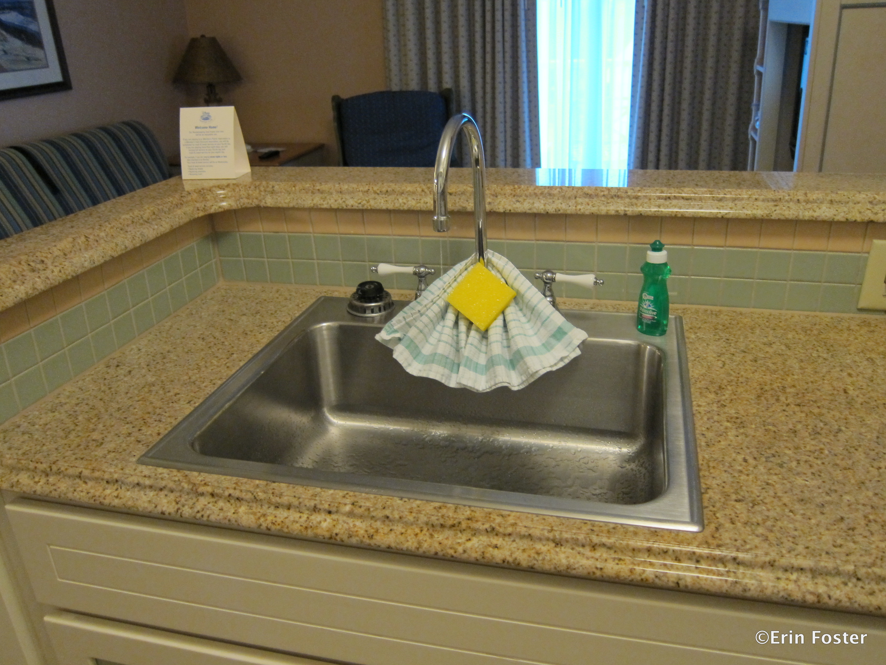 Another year our family had a reunion – we had probably 8 villas at OKW. Each afternoon a different group would host “Happy Hour” in their villa. That alone was worth having the kitchen. The kitchen is pretty easy to tidy up since there isn’t a lot of “stuff” to work around, and it still feels different enough to qualify for vacation.