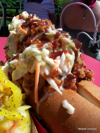 I’m sorry, but I was there a couple of weeks ago, and I must say that I am not very fond of that BBQ Pull Pork Coleslaw hotdog. The pork tasted undercooked, and I had to sweep all of it off of the hot dog. On top of that, some joker cut the bun all the way through, so everything went right through the dog as I picked it up and it went SPLAT all over my plate.