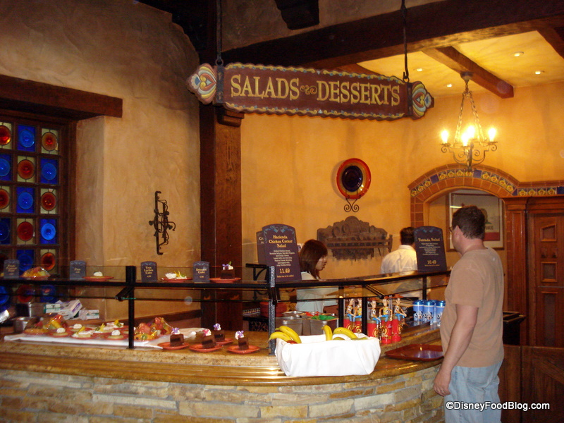 As is customary in many Disneyland counter-service locations, guests order entrees and pick them up cafeteria-style, then head over to get salads, desserts, and drinks.