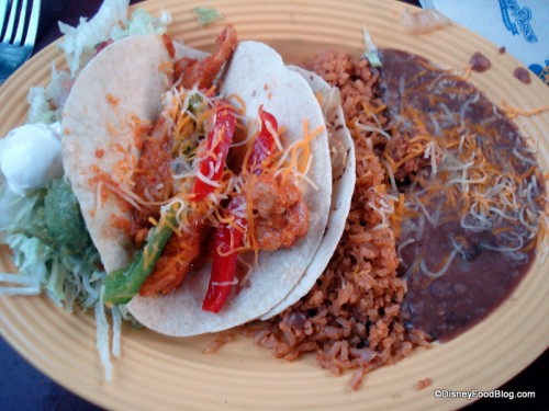 This entree was fantastic! I loved the addition of the peppers (though, note that this is not listed in the ingredients on the menu). It’s just another of the many surprising outcomes in our experiences with Disneyland counter-service dining. The food is very high-quality, fresh, and inventive. Even though I had about three other meals scheduled on this particular day — and I live in Texas where I get some great Tex-Mex on a weekly basis — I was enamored of these soft tacos! Looking forward to my next visit!