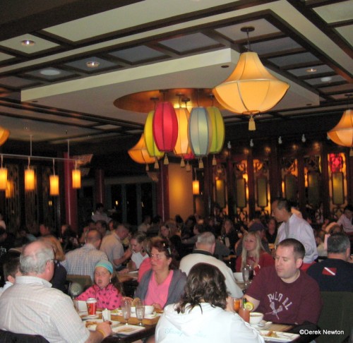 Wall to wall, the design and feel offered no more than any of a hundred cement block Chinese restaurants within a few dozen miles. There was no view, no clue that Nine Dragons was anything beyond ordinary – far below what an experienced Disney diner has come to expect.