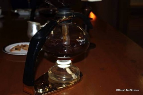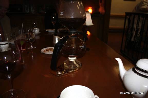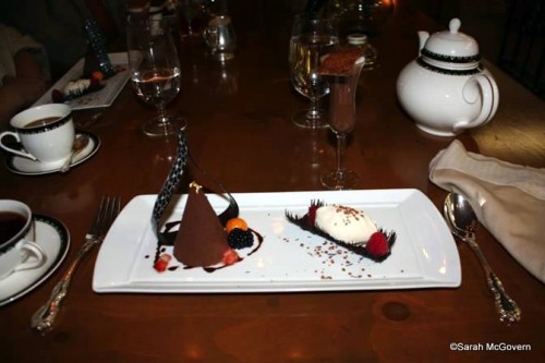At Victoria & Albert’s they have a very unique way of serving coffee. It is brewed table-side in a strange looking contraption that looks like it came out of a chemistry lab. My Dad and I ordered the Kona coffee, my Step-mom got the house blend and Barry had his favorite Mad Hatter’s Tea Party tea. All were very tasty and we received a science lesson along with it!