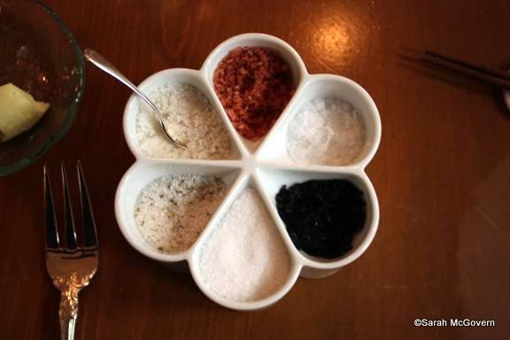Our server then brought a selection of six different salts for us to taste and add to any of our dishes, all with very distinct tastes.