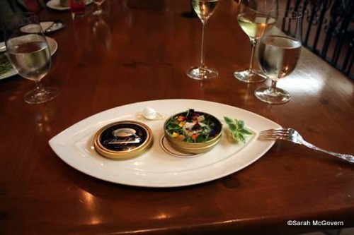 The second course was a Caviar Tin of Peeky Toe Crab with DeSietra Caviar and Petit Herbs. Again, I was skeptical of the caviar, but was pleasantly surprised that this was not very fishy. Chef Hunnel explained the sustainable farming techniques of this particular caviar, as well as the difference between the DeSietra and the Galilee from the first course. It was perfectly complemented by the crab and was a light, refreshing dish. This was paired with a crisp Sancerre.