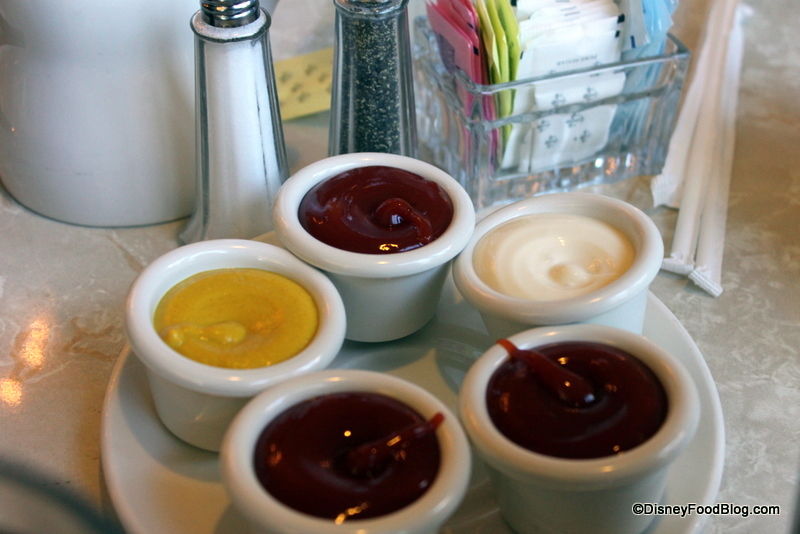 And speaking of french fries, here’s how the condiments come to your table. So if you’re like me and ketchup is your favorite vegetable, order more in advance!