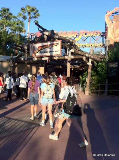 We were seated in the audience area for beginning of the show. Audience members were asked to volunteer, and they were sent off to wardrobe. The first scene (the idol scene) of the stunt show was performed. Afterwards, the extras were brought back out, and if you’ve seen the show, you know the drill!