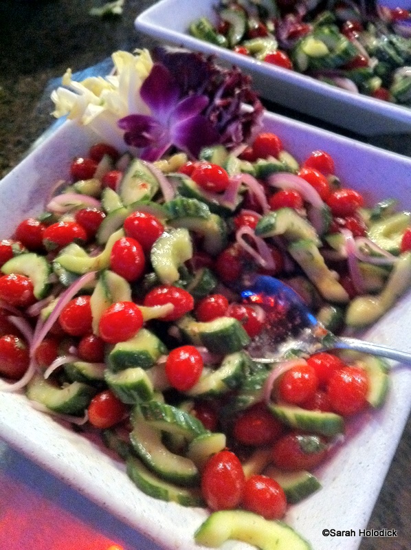 Next — the Cucumber and Red Onion Salad. I love simple cucumber and onion salads, and this was no exception. Matt would have liked more red onion, and I agreed. I did think the addition of tomatoes was a plus.