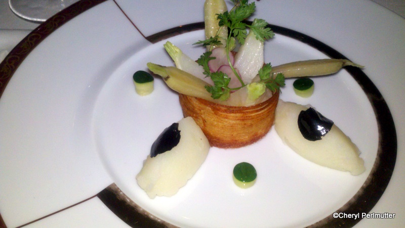 Let’s welcome back guest reviewer, Cheryl Perlmutter, with another restaurant review from the Disney Dream. This time, she dines at Remy and shares her vegan meal with our readers. Thanks, Cheryl!
