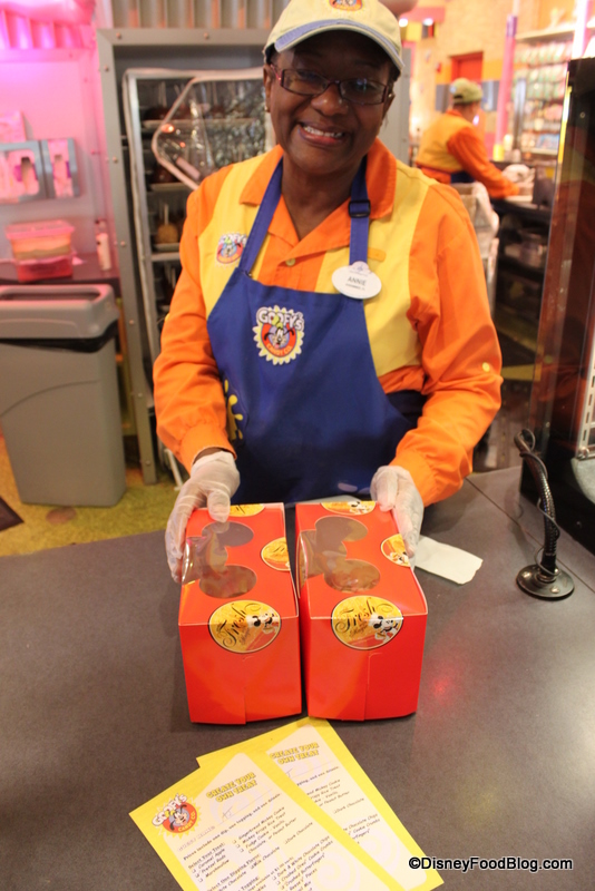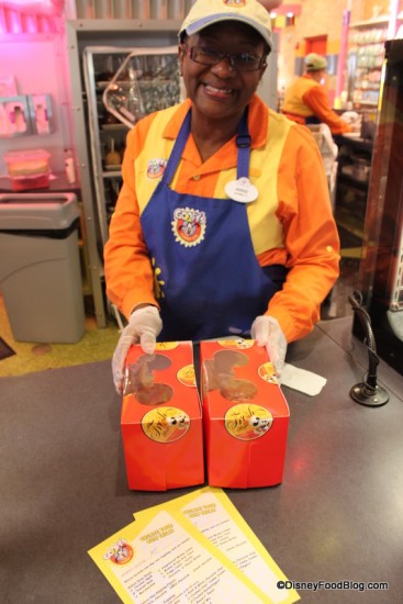 Particularly hardy is the peanut brittle, which guests say stands up to the Florida heat. Mickey rice krispie treats also travel well, and Goofy’s Candy Co. wraps them in paper before boxing them. Karamell-Küche in Epcot’s Germany Pavilion will package cupcakes, chocolate covered strawberries, and other candy delicacies in nice containers. Earl of Sandwich does a great job of packaging cupcakes and other items to-go (particularly useful if you’re driving home and like to have your brownies right by your side in the cup holder!).