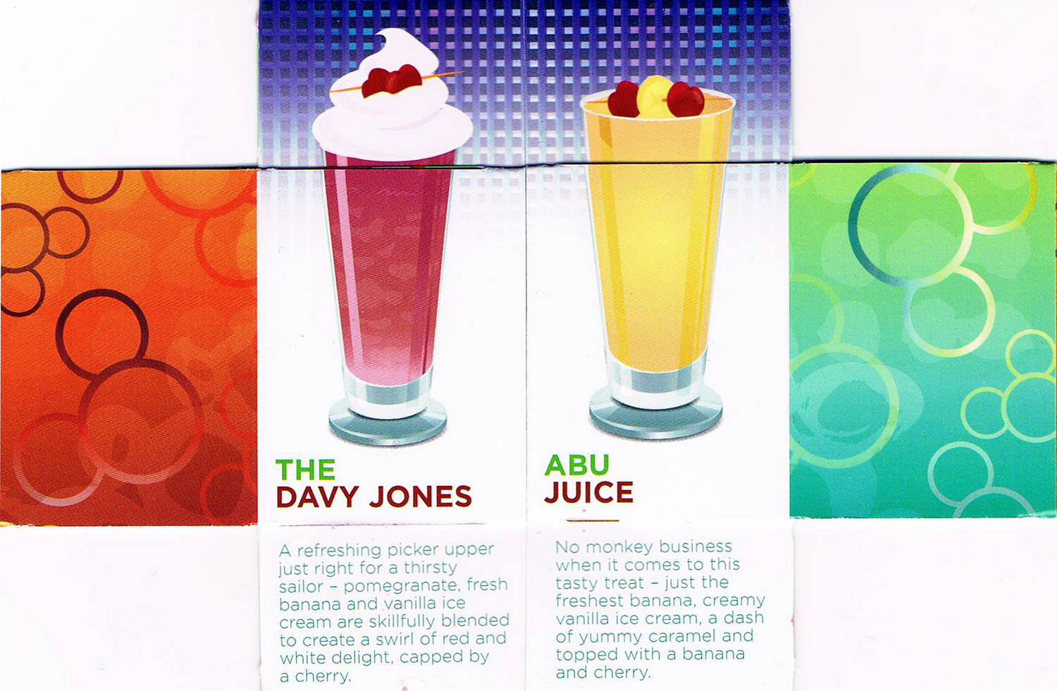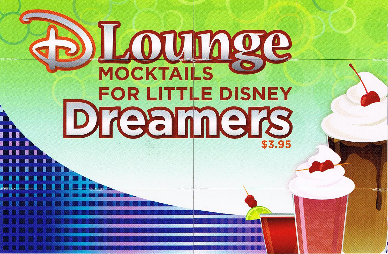 The highlight of non-alcoholic specialty drink menus was the D-Lounge, which is the family nightclub. Not only did the D-Lounge have its own menu with 7 different drinks, the menu itself was very clever!