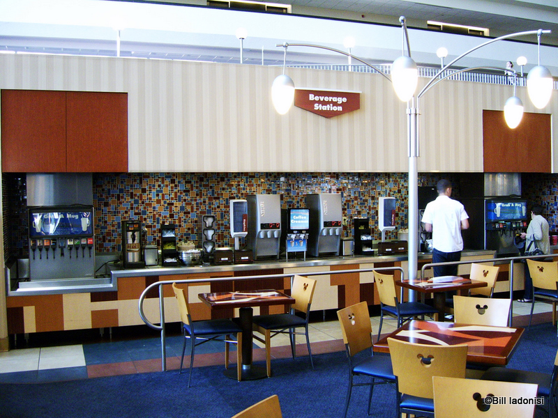 Although I really enjoyed the Steakhouse, this new Café is a wonderful replacement. In fact it makes more sense to have a table-service eatery (Chef Mickey’s) and a quick-service right next to each other. The Grand Canyon Concourse is always bustling with foot traffic, and since the Monorail station is right above, it’s a perfect place for guests to grab a quick bite or beverage before hitting the parks!