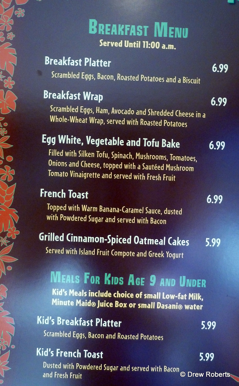 Thanks to Drew Roberts, Disneyland expert and columnist at Daps Magic’s Geek’s Corner, who was lucky enough to get a peek at the Disneyland Hotel’s NEW Tangaroa Terrace menu! Stay tuned tomorrow for his review of Trader Sam’s!