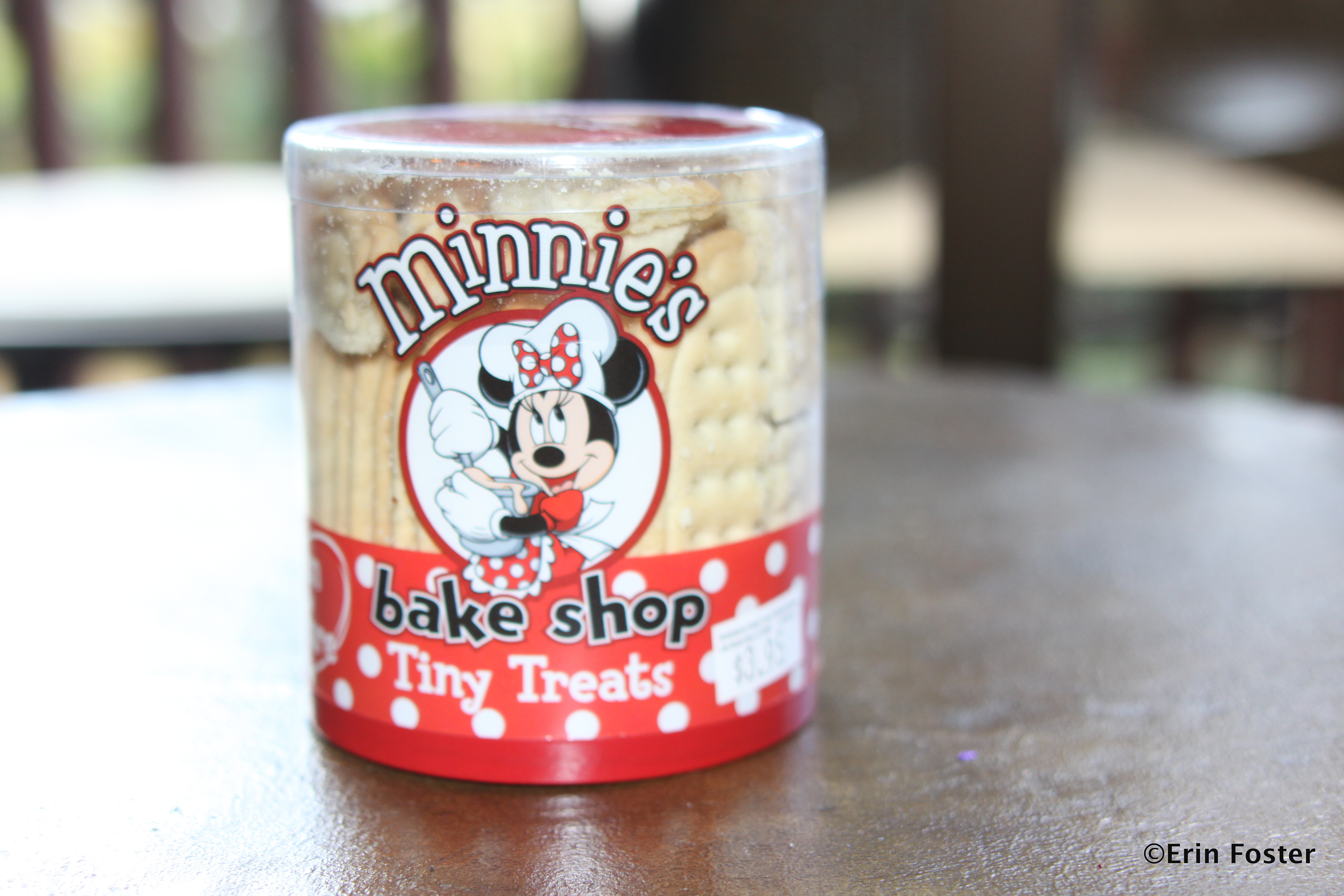 Among these non-candy options are offerings called “Tiny Treats,” some branded with the Chip & Dale Snack Company logo and some with the Minnie’s Bake Shop logo.